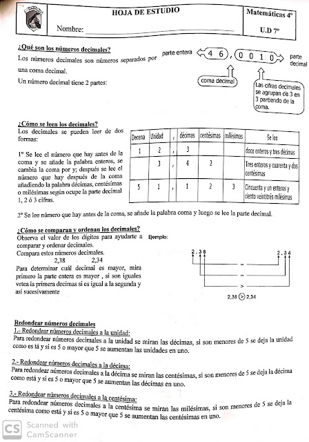 - Página 116: Comparación de decimales. Ejercicios 1,2,3 del libro. Ejercicio 1 de la pizarra.